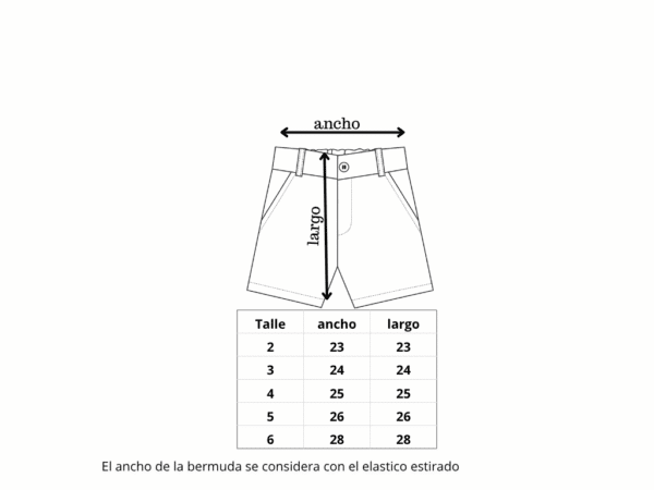 Diseñado para acompañar el crecimiento de tu pequeño, está disponible en talles que van desde el 2 hasta el 6, garantizando un ajuste adecuado en cada etapa de desarrollo. Ya sea para bebés pequeños o para aquellos que empiezan a explorar el mundo a través de sus primeros pasos, esta bermuda ofrece durabilidad y estilo.