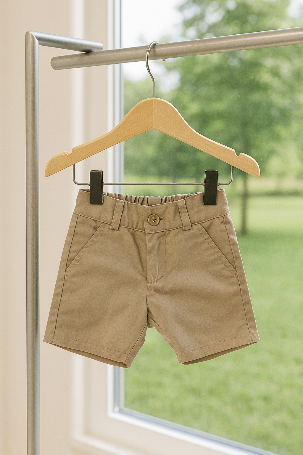 Esta bermuda de bebé es la elección perfecta para garantizar comodidad y estilo a los más pequeños. Confeccionado en una delicada gabardina satinada, ofrece un acabado suave y elegante que cuida la piel sensible de los bebés. Disponible en tres colores clásicos: beige, azul y negro, se adapta fácilmente a cualquier ocasión, desde un paseo casual hasta una reunión especial.