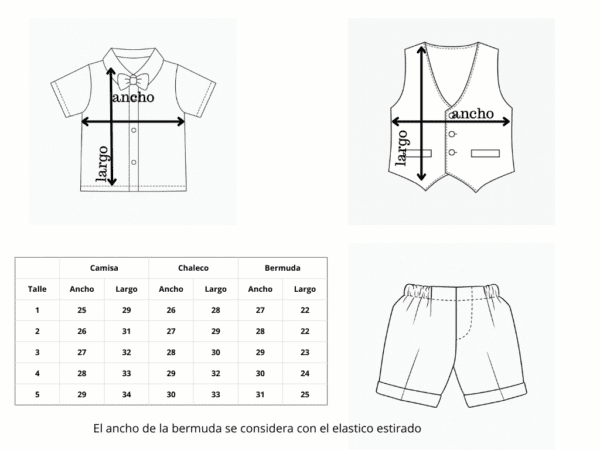 Descubre la elegancia y frescura que ofrece el Conjunto Tropical Melange en color beige y celeste. Este conjunto está diseñado para quienes buscan destacar con un estilo único, sin comprometer la comodidad. Compuesto por una camisa, bermuda, chaleco y moño, cada elemento ha sido cuidadosamente diseñado para crear una combinación perfecta entre funcionalidad y moda.