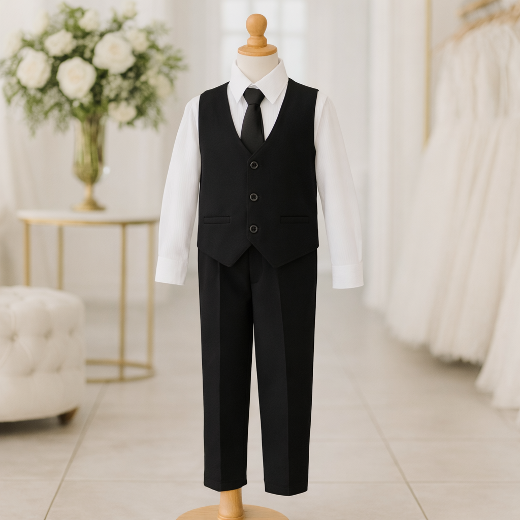 Cada pieza de este conjunto ha sido elaborada con un diseño estético y funcional. El chaleco aporta un toque sofisticado, mientras que el corbatín mejora la apariencia general con un aire de elegancia moderna. La camisa y el pantalón complementan el conjunto con líneas limpias y cortes precisos que favorecen distintos tipos de cuerpos y estilos.
