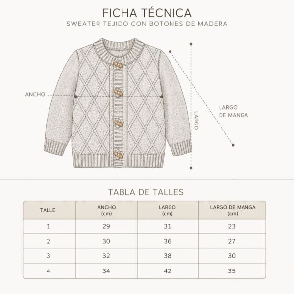 Descubre el sweter de bebé, diseñado especialmente para ofrecer confort y estilo a tu pequeño. Disponible en talles de 1 a 4, este cardigan es perfecto para mantener a tu bebé abrigado en cualquier ocasión. Su textura suave y acogedora permite que tu hijo se mueva libremente mientras se ve encantador. Asimismo, elige entre dos colores elegantes: negro y beige, que combinan fácilmente con cualquier atuendo.